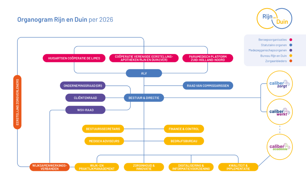 De uitvoering van zorgtaken door Rijn en Duin is ondergebracht bij Caliber Zorgt. Op dit moment betreft dit alleen de Gecombineerde Leefstijlinterventie (GLI).